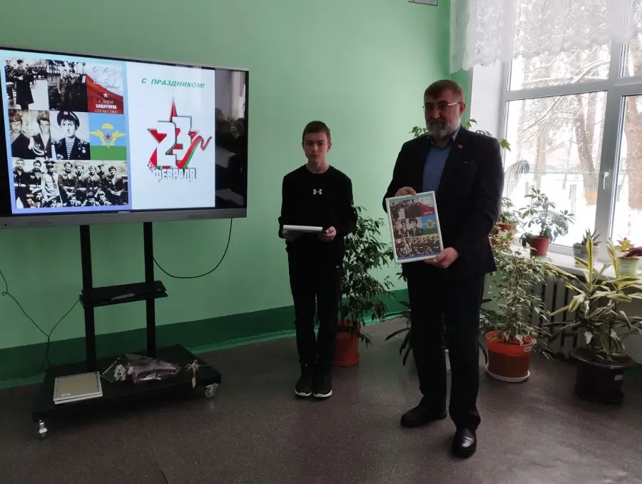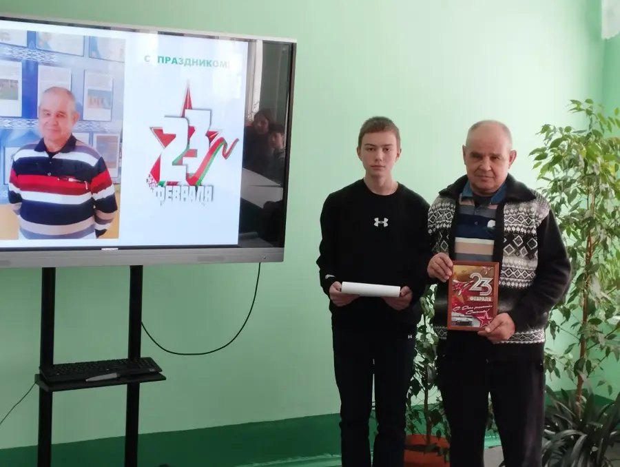 Праздник 23 февраля в школе – хороший повод для воспитания у обучающихся чувства патриотизма, сопричастности к лучшим традициям своей Родины, формирования у ребят гордости за славных защитников Отечества. Это праздник всех людей, которые стоят на страже нашей Родины. Это праздник настоящих мужчин — смелых и отважных, ловких и надёжных, а также праздник мальчиков, которые вырастут и станут защитниками Отечества. 24 февраля 2026 года в нашей школе прошло мероприятие, посвященное Дню защитника Отечества, на котором присутствовал почетный гость Зотов Олег Петрович, житель деревни Нивки Борисовского района. Ребята узнали, что он был призван в ряды Вооруженных сил СССР, служил в Афанистане, был танкистом. Службу завершил после вывода советских войск из Афганистана. Также на мероприятии присутствовали учителя-мужчины нашей школы, которые тоже поделились воспоминаниями армейской службы. Встреча прошла в темлой дружеской обстановке. Каждый мужчина получил в подарок памятный коллаж из армейских фотографий.