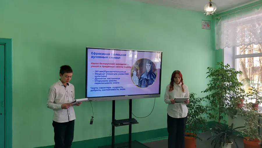 В ходе урока учащиеся вместе с педагогами говорили о том, что образ белоруски издавна олицетворял собой нежность и красоту, но главное — невероятную стойкость и мудрость. Ребята вспомнили знаменитых соотечественниц: просветительниц Евфросинью Полоцкую и Софию Слуцкую, выдающуюся биатлонистку Дарью Домрачеву, первую женщину-космонавта Беларуси Марину Василевскую, а также современных тружениц села, врачей, учителей и матерей.