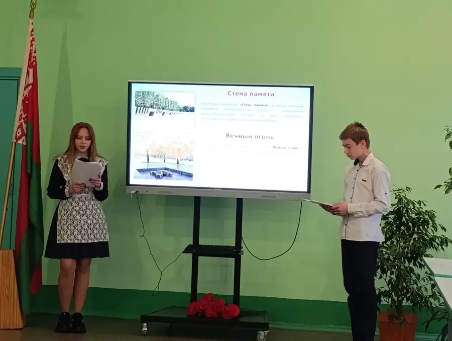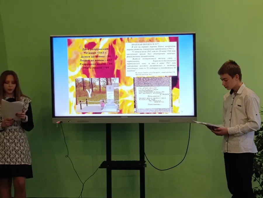 В ходе урока учащиеся познакомились с фактами, отражающими масштаб трагедии белорусского народа в годы Великой Отечественной войны. Особое внимание было уделено событиям 22 марта 1943 года, когда деревня Хатынь была уничтожена вместе с её жителями.