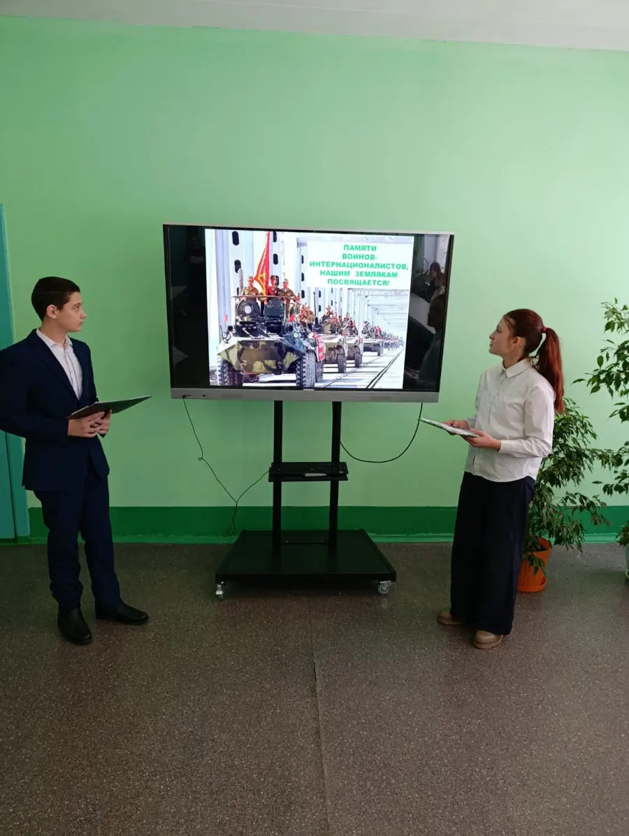 В нашей школе прошло мероприятие ко Дню памяти воинов-интернационалистов. Учащиеся 8 класса познакомили всех присутствующих с судьбами земляков Мстижского сельского Совета, которые служили в Афганистане. Также на мероприятии присутствовали гости из войсковой части 22319 72-го гвардейского объединенного центра подготовки прапорщиков и младших специалистов г.Борисова Красовская Е.Ю. и Должук А.Э. Они рассказали учащимся о военной службе по контракту и познакомили с военными учебными заведениями Республики Беларусь и условиями поступления.